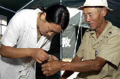 The earthquake struck at 6:58 pm on Saturday in Bairin Left Banner (equivalent to county) and Ar Horqin Banner in Chifeng, claiming three lives. More than 1,000 local residents have been reported as injured so far, 54 of whom are in a critical condition. More than 7,900 homes have been demolished and another 83,000 were damaged by the quake. Despite the death toll remaining unchanged by late Mon night, about 600,000 residents have been heavily affected by the quake that measured 5.9 on the Richter scale. Worse still, rain fell in the region yesterday, making life even tougher for the disaster-stricken residents. Monday night, the local meteorological station forecast that the bad weather would continue. Although no additional deaths were recorded directly from the earthquake, a seismological administrative official from neighbouring Liaoning Province died in a traffic accident while on the way to the area. Gao Rongsheng with the China Seismological Bureau said the deceased was the director of the Liaoning Earthquake Monitoring Network, Wu Xiaobing, who was 43. Wu was among a nine-person group sent to observe aftershocks in the disaster-hit area. The accident, which badly injured the driver and another passenger, happened on Saturday evening about two hours after they had left Shenyang, capital of Liaoning, for the area. Some residents in Beijing, Tianjin and Northeast China's Liaoning Province felt the earthquake as it struck. Quake In Tibet An earthquake measuring 5.7 on Richter scale jolted Southwest China's Tibet Autonomous Region yesterday afternoon, according to China Seismological Bureau. The tremor occurred at 17:03 in an area between Medog, Bomi and Nyingchi counties in eastern Tibet and the epicentre was in a mountainous area 4,000 metres above sea level, according to the bureau. The population of Medog, Bomi and Nyingchi counties is respectively 10,000, 27,000, and 29,000.