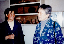 Wu Qing (right), a professor in Beijing Foreign Studies University, pays a visit to Qiao Yulian, who has done pioneering work in insitituting the use of methane gas in Caojiagou Village.