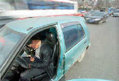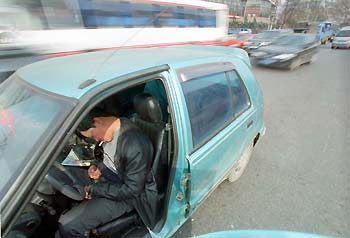 A drunk driver falls asleep by the side of a busy street in Wuhan, Central China's Hubei Province. [newsphoto.com.cn]