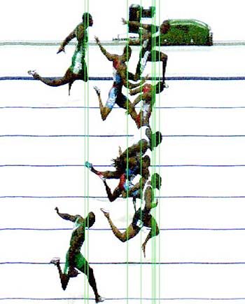 Defending champion Maurice Greene, aiming for an unprecedented fourth world title, was eliminated in the semi-finals. INDEPENDENCE The 29-year-old American made a flying start but slowed noticeably to finish eighth after injuring his left thigh. World record holder Tim Montgomery, who appeared to have regained form in the opening heats, could finish only fifth in the final, with U.S. champion Bernard Williams in sixth place. Collins's winning time was equal to the slowest in any men's 100 final in the 20-year history of the world championships. Nine times Olympic champion Carl Lewis also clocked 10.07 when winning the first of this three world golds in Helsinki in 1983. By coincidence 1983 was the year, St Kitts and Nevis, two Caribbean islands with a combined population of 40,000, gained independence from Britain. "I believe everybody was watching this race on my home island, If they don't have a TV, they'll be watching it at streets by the shop windows," added Collins.