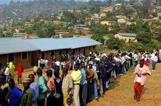 Hundreds of Rwandan voters wait for their turn to cast their votes at a polling station in the first Rwandan multi-party election since the 1994 genocide, in Kigali, Aug 25, 2003.   [Reuters]