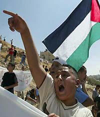 A Palestinian boy takes part in a demonstration against the construction of the fence that will separate Jerusalem and the eastern neighborhoods of the city August 27, 2003.    [Reuters]