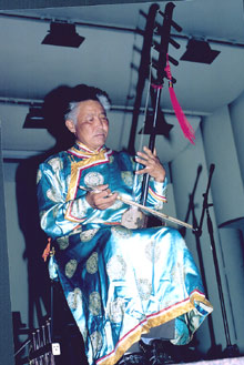 When he performs songs and tells tales, his deep, husky voice and the timbre of the low-pitch sihu almost seem to be identical.