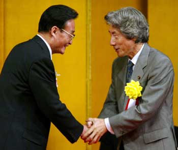 Wu urged Prime Minister Koizumi to pay attention to the case. Wu hoped the incident would be properly resolved and effective measures be taken to prevent reoccurrence of a similar tragedy in the future. Stressing that the proper handling of historic issues is the cornerstone of Sino-Japanese relations, he urged Japanese political leaders to proceed from long-term and strategic perspectives and seek solution to existing problems in line with "taking history as a mirror and looking forward to the future.'' Some cylinders containing mustard gas left by the Japanese troops were accidentally found in Qiqihar, Northeast China's Heilongjiang Province. One woman was killed and 42 other people were injured in the incident. Koizumi, in response, expressed sympathy and condolence to the Chinese victims in the Qiqihar chemical weapon case. He said his government will handle the case through diplomatic channels with an earnest attitude. Kurata also urged the Japanese Government to co-operate wholeheartedly and take responsibility to destroy the weapons in accordance with related international treaties. During talks with Koizumi, Wu also said the Sino-Japanese relations had witnessed a great development in trade and personnel exchange and the development of bilateral ties is not only good for the two countries but is also of great significance for Asia and the world. When talking about how to deepen bilateral ties, Wu said the maintenance of high-level visits is of great importance, stressing the value of face-to-face dialogue between leaders. The economies of the two countries are highly complementary, Wu said. Economic co-operation between the two countries will good for the adjustment and upgrade industrial structure as well establish solid foundation to friendship. The prime minister said he supports the idea that China's development means no threat to Japan but opportunities and the two nations should deploy co-operation in a win-win method. This year coincides with the 25th anniversary of the signing of the Sino-Japanese Treaty of Peace and Friendship, he said. So Wu's visit means a lot to both countries. Wu also met Japanese Emperor Akihito on Friday. As the last leg of his Asian tour, Wu arrived in Japan on Thursday for an official visit. He had previously visited the Philippines and the Republic of Korea.