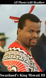 A record 50,000 young women staged Swaziland's annual "Reed Dance," taking part in a traditional ceremony now seen as an audition to join King Mswati's many wives. The 35-year-old king, sub-Saharan Africa's last absolute monarch, now has 10 wives and one fiancee ¡ª a royal luxury that has drawn criticism as his small southern African kingdom battles poverty and a raging AIDS epidemic. Lined up in rows, the maidens danced topless before the king for three hours, undeterred by blustery winds or last year's controversy surrounding Mswati's choice of three teenage reed dancers as his latest queens. "I am tired of being poor. I want to be a queen. I hope the king sees me," said 17-year-old Nomsa Gama, wearing the traditional dance costume of a small piece of beaded fabric around her waist. "There have never been this many girls before. They all want to catch the king's eye," Thulani Dlamini, a traditional warrior assigned to chaperone the maidens, told Reuters. Mswati usually reviews videotapes of dancing girls recorded by the government-owned television station to select new brides, according to palace sources. Controversy swirled after last year's reed dance, when the mother of one dancer charged that her daughter was later abducted from a schoolyard by palace aides and forced to join the royal household. The mother brought suit in the High Court seeking the girl's return but eventually dropped the complaint. The case threw a spotlight on the reed dance as a place where young women might find royal favor, and Saturday tens of thousands showed up with their own Cinderella dreams. The dancers paraded around in military-style divisions before lining up shoulder-to-shoulder, swaying, singing songs and raising toy spoons and kitchen knives blunted with oranges on their ends. Mswati, who came to the throne in 1986, observed the dance from a reviewing platform with his mother, coming down several times to greet the dancers. Last month the palace announced that Mswati would marry the last of three girls chosen during last year's reed dance ¡ª a move seen as clearing the decks for more selections to be made this year. While women's rights activists have slammed Mswati's marriage habits as feudalistic and health care workers have raised concerns they send the wrong message about AIDS, the prospect of joining royalty has a strong allure for many young Swazi women. "I want a limousine, and a house like they give the queens. I want my