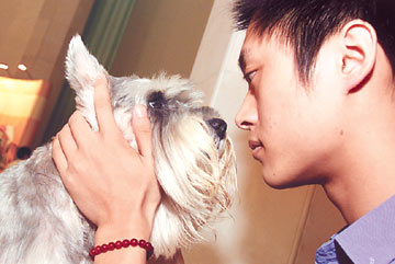 A visitor to the international pets exhibition held recently in Shanghai gazes at one of the canine competitors. [Reuters]
