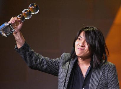 Jacky Cheung holds his award for Pan-Asia Best Artist of the Year at the