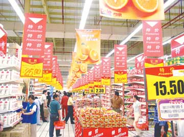 Customers at a shopping mall in Shanghai. China's consumer prices rose 0.9 per cent in August from a year earlier as a jump in food prices covered up for falls in the cost of goods from cars to mobile telephones. [newsphoto.com.cn]