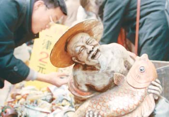 "The reason is obvious: special markets such as Panjiayuan, Guanyuan and Antiques City can provide replicas of antiques at low prices," said Shu Lianyou, a replica antiques collector who regularly visits Panjiayuan flea market. "Because they look very similar to real antiques, these replicas can satisfy the demands of numerous history lovers." Shu's great-grandfather was a relative of the royal family and later became a rich official in the Qing Dynasty (1644-1911). As a die-hard connoisseur of cultural relics, he collected a wide range of precious antiques. But these antiques were gradually lost after the overthrow of the Qing Dynasty and a decline in Shu's family circumstances. As a result, Shu did not receive any of his family's heirlooms after he became an adult. But he dreamed of possessing a similar collection of cultural relics. "As an average wage earner, I cannot afford to buy real antiques provided by licensed cultural relics stores and auction houses," Shu said. "So how to solve the problem caused by the difference between reality and my dream? The best way, in my opinion, is visiting the flea market and purchasing replicas." Shu said most of the replica antiques sellers at Beijing's markets abide by the country's replicas sale law, pointing out the true age of their products to buyers. Prices are generally reasonable as a result. Shu is satisfied with a replica Shang Danasty (1600 BC-1100 BC) cooking vessel with two loop handles and three legs that he bought several months ago. Because of its long history, a real cooking vessel produced in the Shang Dynasty is considered by archaeologists and historians to be priceless and should be under strict protection. It is impossible for people to trade such a cultural relic legally. "But a replica of the ancient cooking vessel is still greatly attractive to me because of its strong historical flavour. It cost only 300 yuan (US$36) so I made the deal with the replica antiques seller without the slightest hesitation," Shu explained. Shu estimates that he owns hundreds of replica antiques - all of which decorate his home. "Whether they are authentic or not is not important for me. The important thing is they look like real cultural relics and can satisfy my craving for age-old Chinese civilization," Shu added. Nelson Lean, a Canadian businessman, is also a frequent visitor to Panjiayuan Flea Market and loves replicas. "Like Shu, I do not care whether the items I buy from the market are real or not. I can use the replicas as substitutes for real antiques to decorate my office," Lean said. Lean prefers replicas to real cultural relics because the Chinese government prohibits the sale of all antiques produced before 1795 and does not allow people to take valuable antiques outside the country. "Owning real cultural relics would be a heavy burden on me because I have to protect them well. Relatively cheap replicas are nothing but objects commemorating my days spent in Beijing," Lean said. As a result, he can choose to take them back to Canada or give them to local friends when he leaves Beijing. "That is the major reason why I love the replicas so much," Lean stressed. Thousands of producers and sellers of replica antiques have emerged in the capital because of the demand among the local and foreign communities. Wu Xingguo, a farmer from Hebei Province, now sells replica antiques. "Although some illegal merchants sell replicas to customers at high prices while claiming they are real antiques, most business activities are legal. I am confident in the development of this special market. Where there is demand, there is money to be made," Wu said.