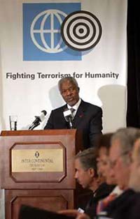 "There should be no selective application of the international norms and standards against terrorism," he told a day-long conference of world leaders at a New York hotel. So long as India "persists in its violent suppression of the Kashmiri people, they have a legitimate right to resist Indian occupation," Musharraf said. "Equating their freedom struggle with terrorism is a travesty." "We are ready for dialogue. Now it is India's call. It should respond positively," he said. Musharraf's remarks were echoed by Palestinian Authority Foreign Minister Nabil Shaath, who told the conference that armed struggle against Israel was justified by its use of "state terrorism" against Palestinians. India did not attend the summit and had no immediate reaction, but Israeli Foreign Minister Silvan Shalom lamented that Shaath had chosen to blame Israel "rather than fight our common enemy, terrorism." More than 20 world leaders gathered at the conference only hours after a second attack in weeks on U.N. headquarters in Baghdad killed a security guard and wounded 19 people. The first attack on Aug. 19 killed 22 people including Sergio Vieira de Mello, the U.N. mission head in Iraq. The summit, convened two years after the Sept. 11, 2001, attacks on the United States, opened on the eve of a two-week 191-nation U.N. General Assembly, expected to focus on terrorism and post-war Iraq. President Bush has made the war on terrorism his top international priority but did not send a senior administration official to the summit. The United States was represented by Senate Foreign Relations Committee Chairman Richard Lugar. U.S. officials said Bush would not be in New York until Tuesday while Powell was busy with a U.N. special session on AIDS. Lugar, a Republican from Indiana, said the top priority in the war against terrorism must be to keep nuclear, biological and chemical arms out of the hands of militants who could use them in suicide attacks. Musharraf dismissed the idea that a "militant Islam" was at the root of terrorism. "There are only some 'militant Muslims' -- as there are militant Hindus, Christians and Jews," he said. "Most of the political disputes of our times afflict Islamic peoples and nations," he said. "Religious extremism and militancy have risen because these conflicts have been allowed to fester. There is a feeling in the Muslim world that Islam is being targeted." Most of the world leaders addressing the conference called on the international community to seek out the root causes of terrorism and warned that torture, assassination and accidental civilian deaths could strengthen the militants. "Terrorism will only be defeated if we act to solve the political disputes and long-standing conflicts which generate support for it. If we do not, we shall find ourselves acting as a recruiting sergeant for the very terrorists we seek to suppress," U.N. Secretary-General Kofi Annan said.