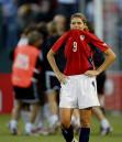 Brandi Chastain, who became the symbol of the 1999 U.S. World Cup victory when she ripped off her shirt after scoring the winning goal, came onto the field to console her teammates. She broke her foot last month in the opening-game win over Sweden.