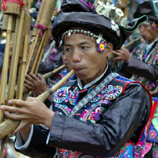 In 1957, Wu dazzled a Western audience with her wonderful singing in Moscow. It was not until then that Dong folk singing was known to the world. In October 1986, when the dage Chorus of Dong Ethnic Group participated in the Paris Art Festival, the beautiful and pure human voice emulating the sound of cicada enthralled Western audiences and musicians. Some researchers of Dong ethnic history believe dage came into being during one of the prime times of the group's history, because without such an era of prosperity it's difficult to explain how an ethnic minority with a population of only 1 million could retain such mature and harmonious music. For the Dong people, singing has always been an indispensable part of their lives. They like to sing after a day's hard work, at festivals, weddings and funerals, and to communicate happiness and wishes. The songs are about anything they see and hear, or anything they feel and think. Most Dongs begin to study singing in their early childhood - generally with their mothers as their first teachers.