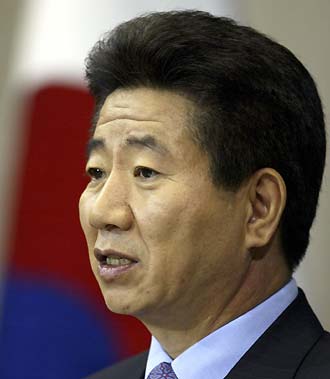 conference at the presidential Blue House in Seoul October 11, 2003. Roh