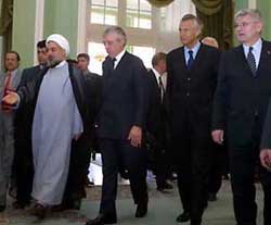 "I don't think we will sign it before October 31 but probably before November 20," Rohani said. According to the declaration agreed in Tehran, Iran said it would implement the protocol before it had been ratified. But Rohani was non-committal on how long Iran would maintain the freeze on uranium enrichment. "We voluntarily chose to do it, which means it could last for one day or one year, it depends on us," he said. "As long as Iran thinks this suspension is beneficial it will continue, and whenever we don't want it we will end it." The official Iranian news agency later quoted him as saying Iran was not prepared to abandon totally its uranium enrichment program. Enriched uranium can be used to fuel reactors but if enriched further, can be used in warheads. The IAEA has found arms-grade enriched uranium at two facilities in Iran this year. Iran blames the findings on contamination from parts it bought abroad on the black market. IRAN NOT YET IN CLEAR Experts said the Tehran agreement, while a positive step, did not mean Iran was in the clear. But German Foreign Minister Joschka Fischer said on his return to Berlin that the Iranian agreement might help prevent a repeat of the standoff with North Korea, so long as the pledge was fully implemented. "It is an effort to prevent us getting into a new conflict situation analogous to the one on the Korean peninsular," he told reporters after returning from a visit to Tehran with his British and French counterparts. "I think it's worth the effort, but at the same time our attitude is one of realism, not wishful thinking, so it comes down quite definitely to implementation," he said. French Foreign Minister Dominique de Villepin told a news conference: "We have achieved this morning important progress and we found a basis for agreement on the three pending issues." These were: immediate signature and early implementation of the additional protocol to the NPT; full cooperation with the IAEA and suspension of all uranium enrichment. According to the Tehran declaration, the three European countries in turn recognized Iran's right to develop a civilian nuclear energy program and held out the prospect of "easier access to modern technology and supplies in a range of areas."
