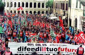 The April 2002 general strike protested reforms to make it easier to fire some workers. Business owners had lobbied for more flexibility in firing. That reform coincidentally went into effect on Friday. A decade ago, when Berlusconi in his first government attempted pension reform, 1 million citizens took to the streets in protest, and his coalition fell shortly after.