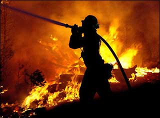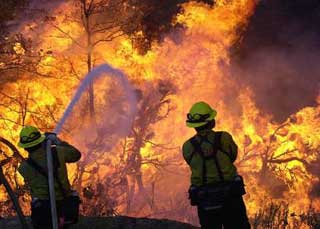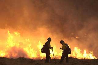 Correll of the Sky Forest Fire Dept. battle the Old Fire as it tries to