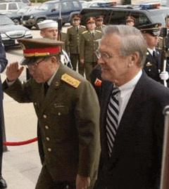 U.S. Secretary of Defense Donald H. Rumsfeld (R) escorts Chinese Minister of National Defense General Cao Gangchuan, past an honor cordon at the Pentagon, October 28, 2003. [Reuters]