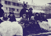 Helmut Stern (centre, sitting) enjoys a ride on the frozen Songhua River with his family members and some friends in the late 1930s.
