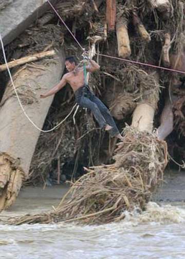makeshift rope and pulley, Tuesday Nov. 4, 2003, in Bukit Lawang,
