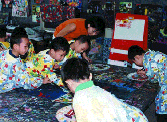 Children from the Shenzhen Nanshan Kindergarten are fasinated by a painting class. [File photo]