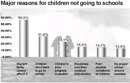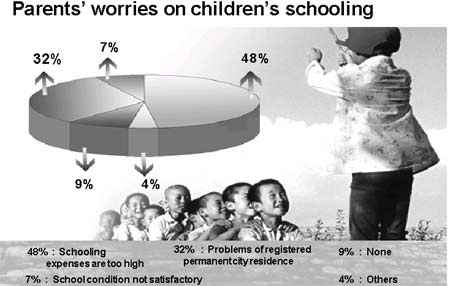 The survey shows these high extra fees have become the gravest concern weighing on the minds of the temporary migrant workers who are trying to secure education for their children, and has become the chief factor leading to early drop-out rates for those students.