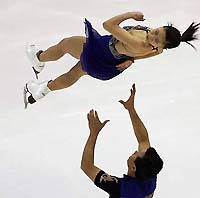 China takes top two spots in pairs free skate ( 2003-11-08 10:23) (Agencies) China showcased dizzying lifts, spins and jumps Friday and took the top two spots in the pairs free skate and the overall competition at the Cup of China.