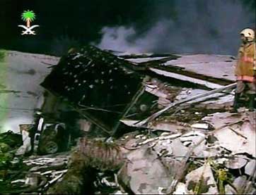 The official Saudi Press Agency, quoting an Interior Ministry official, described the attack as "terrorist." There were conflicting reports of the number of dead and wounded. An official at a Riyadh hospital, speaking on condition of anonymity, said dozens of people were killed. The official said dozens more were wounded, and that Saudis, Germans, French and Italians lived in the 200 villas in the compound. The manager of the targeted compound estimated that 100 people were wounded, and a resident said 20 to 30 people were killed, the Al-Arabiya television channel said. Officials at the King Khaled Specialist Hospital and the King Faisal Special Hospital & Research Center said the two hospitals received 38 injured people. Flames could be seen still burning at the compound several hours after the explosion. U.S. State Department spokeswoman Amanda Batt in Washington said no Americans were hurt. The attack occurred a day after the U.S. Embassy issued a warning that terror attacks could be imminent in the tense Gulf kingdom, and American diplomatic missions in Saudi Arabia were closed Saturday as a result. A May 12 attack on western residential compounds in Riyadh killed 35 people, including the nine attackers. It was blamed on the al-Qaida terror network, and Saudi authorities have arrested hundreds of suspected militants throughout the country since then. Fifteen of the 19 hijackers in the Sept. 11 attacks were Saudis. Diplomats reported one big explosion about midnight, followed by two smaller ones 15 seconds apart. The streets were crowded with late night crowds because of Ramadan, the holy month when Muslims fast during the day. Dozens of police cars and ambulances raced toward the direction of the blasts, sirens wailing, and helicopters hovered overhead. Traffic was tied up across the city. A woman living in the compound told reporters that "there is lot of blood" at the scene of the explosions. "I am extremely terrified; I am really scared. I felt it was an earthquake," the woman said without identifying herself. "Lots of houses are damaged, windows shattered and police echoing with sirens of ambulances," she said. "The ambulances were picking up lots of people. It looks like there are lots of people who died." The Saudi government official said the explosions took place in the Muhaya compound. He said the attackers exchanged fire with the guards and he said there were apparently three explosions. He said most of the wounded were believed to be children because their parents were out shopping during Ramadan. Most of the residents are Arabs and few Westerners live in the area. Batt, the State Department spokesman, said initial reports indicated there were explosions and gunfire in Riyadh. She referred to explosions at three compounds that housed Westerners but acknowledged the compounds could have been all in the same complex. Hanadi al-Ghandaki, manager of the targeted compound, told al-Arabiya that about 100 people were wounded, mostly children "because most adults were outside the compound at that time." She did not elaborate.
