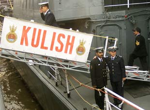 aboard an Indian destroyer INS Ranjit in Shanghai, November 11, 2003.