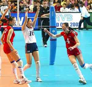 After Liu Ya'nan smashed home the match winner, the Chinese women threw head coach Chen Zhonghe into the air and broke into tears. "It's really not easy (to win the World Cup title)," said Chen,who was the assistant coach when China took its last World Cup title in 1985. "We have been waiting for this moment for 18 years." "I have to thank my players, they worked so hard in the past three years," Chen added. "We came across a lot of difficulties, but never gave up." Brazil beat world champion Italy 3-1 earlier on Saturday to finish second at the World Cup with a 10-1 record. The United States swept Sydney Olympics champion Cuba 3-0 for a third finish and the last berth to the Athens Olympics on offer. Italy, Japan and Cuba settled for the fourth to sixth places respectively in the 12-team tournament. China, who had secured a top two finish and a spot in the Athens Olympics in 2004 before Saturday, wound up the single round-robin tournament in style with the 25-18, 25-18 and 25-13 victory over the hosts. Roared on by 10,000 chanting and cheering home fans, the Japanese fought hardly against the powerful Chinese. However, they were unable to stop 1.96-meter Zhao Ruirui, who converted 11 of her 16 attacking attempts to lead China with 13 points. "I did not realize we had clinched the victory when Ya'nan scored the last point," Zhao said. "I dare not look at the scoreboard when I was on the court." "We were under pressure playing against Japan in front of so many enthusiastic home fans, and Japan played steadily during the match," Zhao added. "But we won through with unity and confidence." Yang Hao contributed 11 points for China, Zhou Suhong and Wang Li'na added seven apiece. The Chinese, winners at the World Grand Prix in Italy in Augustand the Asian Championship in Vietnam in October, completed their title hat-trick at the international stage in 2003 with an 11th straight win at the two-week-long tournament. Chinese fans have waited for 17 years to see the hand-over of torch from the "Old Chinese Women's Volleyball Team", which had grabbed five straight titles in the three major tournaments in the1980s, to the new generation. "We have been waiting so long for this moment," said Cui Miao, a 28-year-old Chinese student in Osaka. "I am so proud of the players, they are my heroines." Chinese captain Feng Kun, who was a two-year-old baby when China took its first ever World Cup title in 1981, could not hold back her joyful tears. "It's dream come true," Feng said. "I have been dreaming of winning the world championship for China since I began to play volleyball at ten." The opponents also lavished praises on the invincible China. "China is obviously the best team in the world," said Brazilianhead coach Jose Guimaraes. "Unfortunately we met them in the opening match." The Brazilians, who suffered their only loss at the tournament to China, finished second behind China with a 10-1 win-loss record. "They deserved to win the title," said Italy's head coach MarcoBonitta. "China is the strongest team in the world and they won everything this year. "They prepared best for the World Cup," Bonitta added. "They have good tactics, the players are experienced and they are mentally strong."
