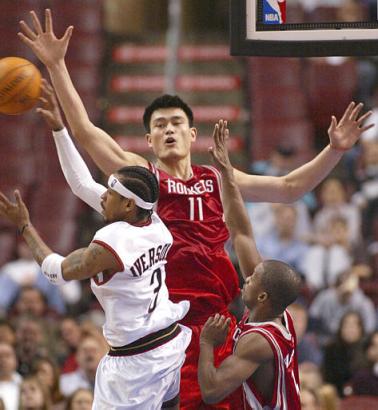 Yao changed a few shots also, as driving Sixers were forced to kick out to an open man ¡ª who usually missed.