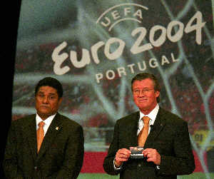 A fascinating draw also saw hosts Portugal lining up against neighbours Spain in group A, and defending champs France meeting England in group B in another of the most interesting encounters in the tournament's early stages. The German-Dutch rivalry is always intense, and their matches have become explosive affairs since the Dutch knocked the German hosts out of the 1988 European Championship. Two years later, the two teams were involved in a turbulent encounter at the World Cup in Italy, when current German coach Rudi Voeller was sent off along with Dutchman Frank Rijkaard. The two sides will play in their opening group D game on June 15, in a section which also includes the Czech Republic and Latvia, the only newcomers to the finals. The Dutch and the Czechs will meet again after qualifying together from the same group this time. The Germans, Dutch and Czechs will have a tough time competing for two places in the quarter-finals. "Our good fortune with the draws has abandoned us this time," said Guenter Netzer, a former German international and now a television commentator and columnist. Portugal play Spain on June 20 in Lisbon, in a match which home fans will see as the undoubted highlight of the opening round. Portugal will be wary of their neighbours, who beat them 3-0 in a friendly in Guimaraes in September. Greece, who topped their qualifying group and beat Spain away from home, are also in this section with Russia. The Greeks will play Portugal in the tournament's opening match in Oporto on June 12. France and England play their opening fixture the next day in Lisbon, in a group which also includes Switzerland and Croatia. The two old rivals look to be the favourites to make progress. French defender Marcel Desailly, who plays in England for Chelsea, said: "This draw is neither easy nor very hard. It's in between. We'll see. Our group is not so bad since the first two qualify. For sure, we'll talk about it at Chelsea." England's Swedish skipper Sven-Goran Eriksson said: "Our first game against France... it's a big, big game. It will be difficult, but beautiful." Italy appear on paper to have the easiest ride into the quarter-finals. They were drawn in group C, with Bulgaria, Sweden and Denmark.