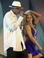 Jay-Z ,left, and Beyonce perform 'Crazy in Love' during the 3rd annual BET Awards, in this June 24, 2003 file photo, in Los Angeles. (AP Photo/File) Pharrell also is competing against himself for best rap song for his songwriting collaboration on "Beautiful" and the Jay-Z song "Excuse Me Miss." Album of the year contenders were Elliott's "Under Construction," "Fallen" by Evanescence, "Speakerboxxx/The Love Below" by OutKast, "Justified" by Timberlake and "Elephant" by The White Stripes. Dark rockers Evanescence were also represented in the best new artist category alongside rapper 50 Cent, the alt-pop group Fountains of Wayne, R&B singer Heather Headley and dancehall artist Sean Paul. Artists with four nominations each included Erykah Badu, Willie Nelson, Jose Serebrier and Jack White, who had one individual nod and three for his work in his group The White Stripes. Song of the year nominations, which go to songwriters, went to Linda Perry for Christina Aguilera's "Beautiful," Richard Marx and Vandross (who suffered a stroke this year) for "Dance With My Father" and Avril Lavigne and the songwriting group The Matrix for Lavigne's "I'm With You." Others were Jorge Calderon and Zevon for the later entertainer's reflection on mortality "Keep Me in Your Heart." Zevon died from lung cancer at age 56 on Sept. 7. The songwriter nominees for "Lose Yourself" were Jeff Bass, Eminem and Luis Resto. Best rap album contenders are Elliott's "Under Construction," 50 Cent's "Get Rich or Die Tryin'," Jay-Z's "The Blueprint - The Gift & The Curse," OutKast's "Speakerboxxx/The Love Below" and "Phrenology" by the Roots. Pop stars Moby, Sarah McLachlan and Dido were among a group of musicians who announced bids for the Grammys, which will be awarded in 105 categories on Feb. 8 at the Staples Center arena in Los Angeles. The program will be broadcast live by CBS.