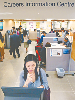 A Jobseeker looks for employment opportunities at a labour department office in Hong Kong. Hong Kong's unemployment rate has dropped to 8 per cent since its peak in May, with marked improvements every month. [Reuters]