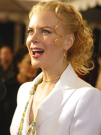 While the jewels she wore draped around her neck looked like the sort Lenny Kravitz would dig, there was no sign of the groovemeister - who is her current flame. Others who turned out for the glamorous affair included director Anthony Minghella and Kidman's co-stars Jude Law, Renee Zellweger, Natalie Portman and Kathy Baker. Zellweger certainly looks to have immersed herself in the role of Bridget Jones for the upcoming sequel, due for release next year. The petite actress famously beefed up for the role on doughnuts and pizza before shedding it, then having to chow down again for the sequel. Her efforts at changing shape for a role make Robert de Niro and Eric Bana look like lightweights. But she has certainly been making the most of her enhanced assets, squeezing herself into a black strapless number. Zellweger and Law are not travelling to Sydney for the premiere next week, leaving the red carpet duties to Kidman and Minghella. They'll attend the black-tie premiere at the State Theatre and special