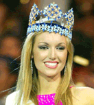 Miss Ireland Rosanna Davison (C) poses with her parents singer Chris de Burgh and wife Diane (R) after being crowned Miss World 2003 in Sanya. [AP]