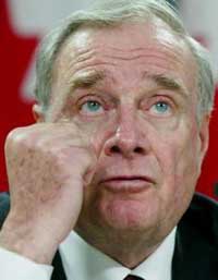 Candanian Prime Minister Paul Martin holds a news conference after he was sworn-in as Canada's 21st prime minister, Friday Dec. 12, 2003.  [AP]