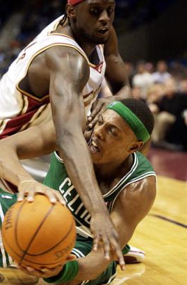 Notes:@ Pierce, who has 15 career 40-point games, is the only NBA player leading his team in average, points and assists. ... Cavs coach Paul Silas has banned rap music in the Cavs' locker room right before games. "I can't stand that stuff," Silas said. "Those guys need to concentrate on the game." ... The Celtics placed F/C Raef LaFrentz on the injured list with tendinitis in his right knee. This is the second time LaFrentz has been sidelined this season. Boston activated C Kendrick Perkins. ... The Cavs, whose 33-game road losing is the third-longest in history, play at Indiana on Monday night.