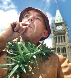Occasional marijuana user Jim Hoad smokes a marijuana cigarette on Canada's Parliament Hill. [CP Archive]