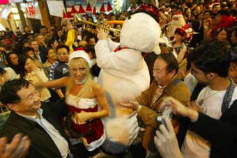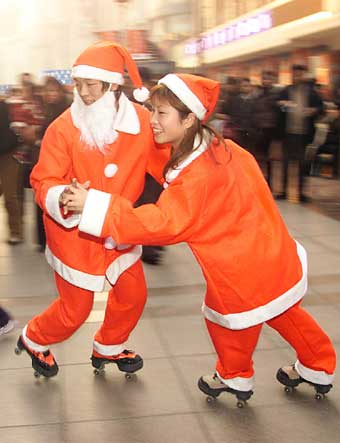 Nanjing Donglu in Shanghai yesterday to celebrate the Christmas holidays.