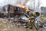 The plane crashed into a vacant corner house, then skidded across the street, where most of the aircraft ended up in the garage of a second home, said Deputy Fire Chief Lester Mount.
