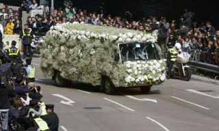 The hearse carrying the casket of the late Cantopop diva Anita Mui leaves the funeral home to a crematorium in Hong Kong January 12, 2004. [Reuters]