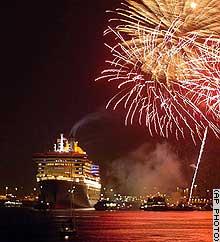Ceremonies welcoming the vessel to Southampton on December 26 were subdued out of respect for those killed when a gangway collapsed November 15 at the shipyard in St. Nazaire, France, where the ship was built.