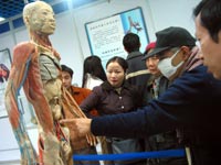 The show in a 700-square-metre hall of the Beijing Museum of Natural History features six plasticized human bodies and nearly 200 plasticized human tissues and organs including spleens and lungs.