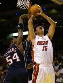 Notes:@ Grant returned to the starting lineup after missing one game with a bruised knee. He failed to score in 21 minutes. ... The Nets came into the game ranked last in the league in rebounding. ... The Heat improved to 12-12 against the Eastern Conference. ... Haslem ranks second among NBA rookies in rebounding. NBA: Wang Zhizhi finished 11 points in 11 minutes to lead the Miami Heat to an 85-64 victory over the New Jersey Nets. (chinadaily)