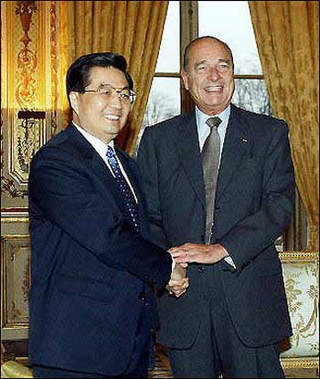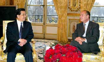 in Paris Monday, Jan. 26, 2004. In their first meeting after Hu's