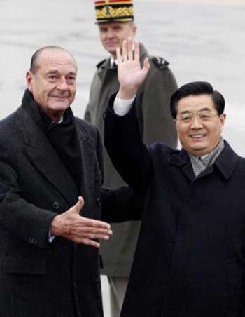 2004. Hu arrived in Paris for a four-day state visit marking the 40th
