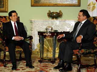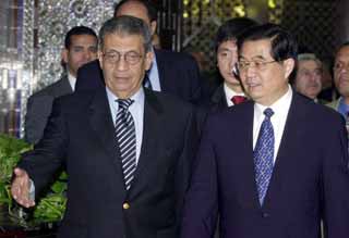 meets Chinese President Hu Jintao at the League headquarters in Cairo