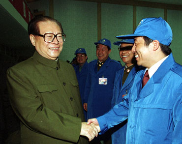 | | | | | | | | | | | | |  | | | Jiang Zemin congratulates technicians on the successful launching of the Shenzhou III March 25, 2002. [newsphoto.com.cn]