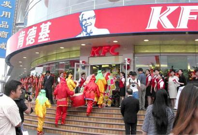 | The 100th Kentucky Fried Chicken, KFC, chain restaurant opens in Beijing, China, Wednesday, Sept. 3, 2003. The world's largest chicken snack chain enterprise (news - web sites) KFC announced on Wednesday in Beijing and Shanghai that its chain restaurants in the two cities have surpassed 100 respectively since its entry into China in 1987. [Xinhua] |