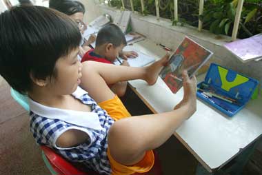 feet to hold a book at the Peace Village in Tu Du hospital February 3,